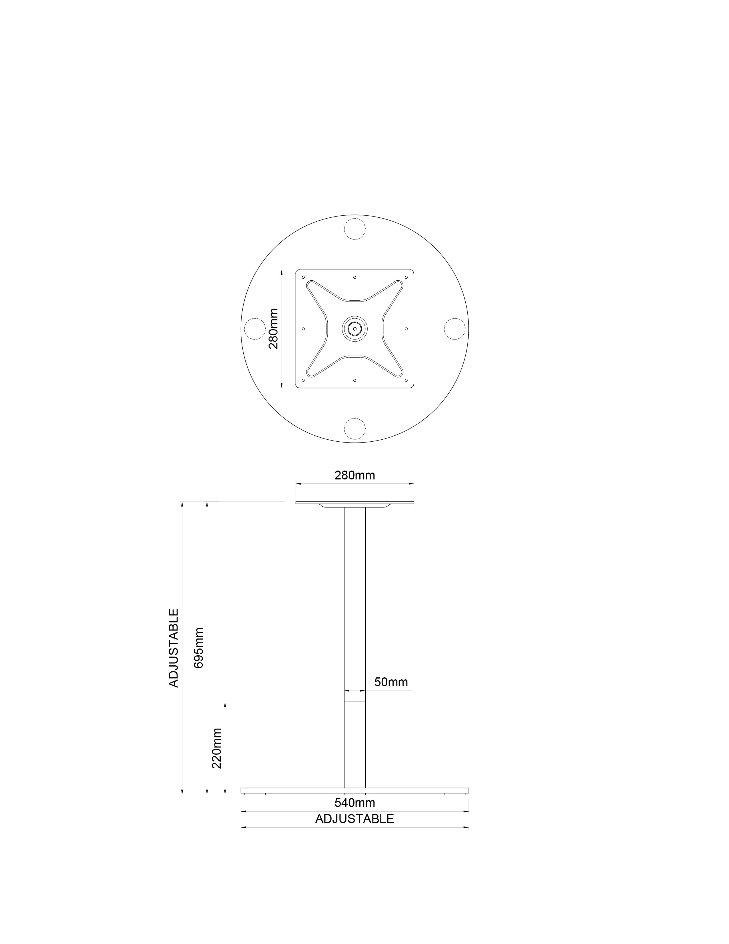 540mm diam x 695mm H (731mm H inc concrete top and substrate)